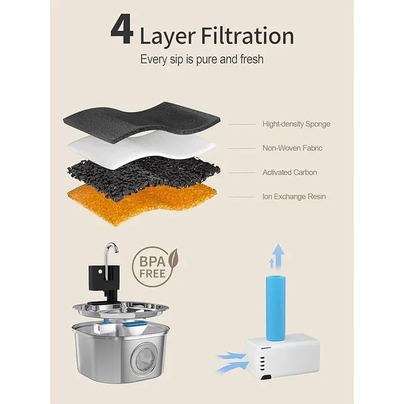 Ensure fresh hydration for your pets with this 3.2L stainless steel automatic water fountain. Features a wireless 4000mAh battery, smart water circulation, and a visual water level window for cats and small dogs. Durable, hygienic, and quiet, this smart pet fountain provides convenient, continuous access to clean drinking water anywhere.