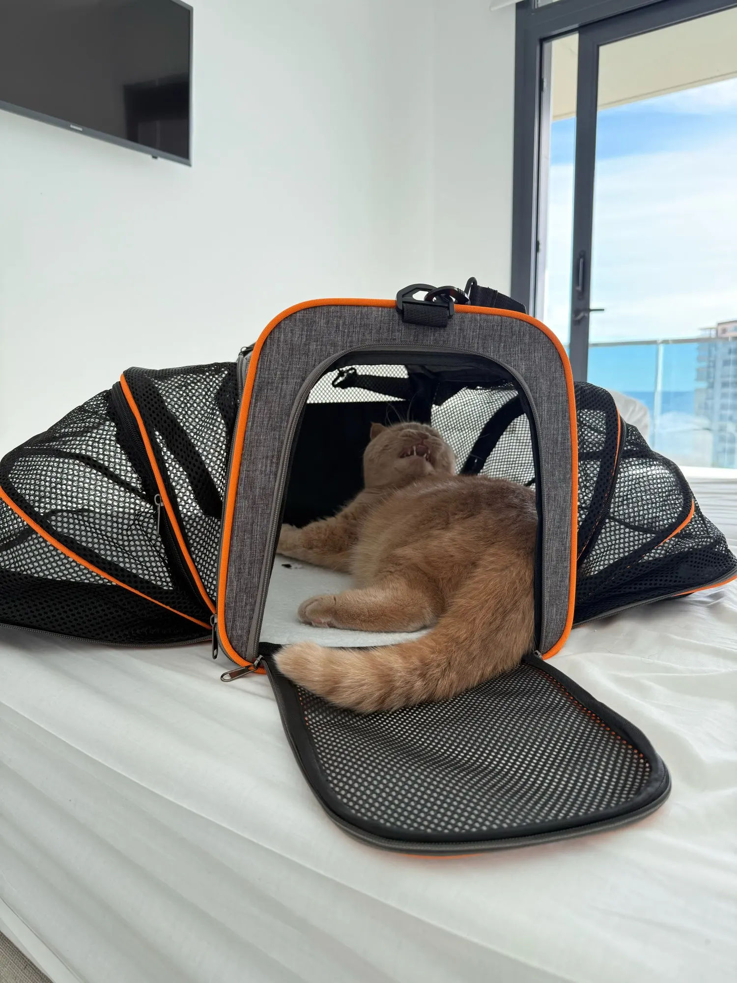 Foldable Expandable Pet Carrier Bag – Breathable Mesh Travel Bag for Small Dogs & Cats